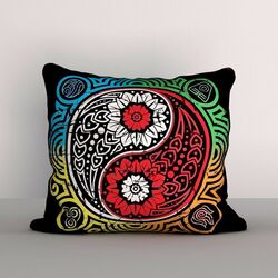 Наволочка 45-45 см декоративная диванная 100% узбекский хлопок mato® цветочный Инь-Янь