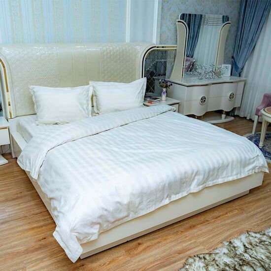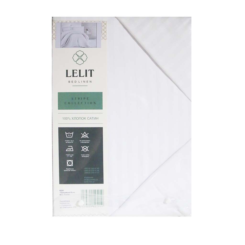 Комплект постельного белья двуспальный страйп-сатин 100% узбекский хлопок LELIT белый