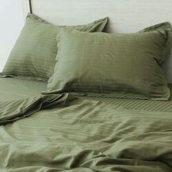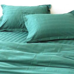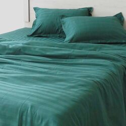 Комплект постельного белья двуспальный страйп-сатин 1 см 100% узбекский хлопок LELIT изумрудный зеленый