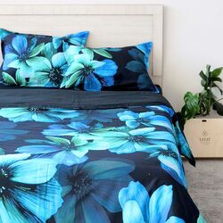 Комплект постельного белья двуспальный сатин 100% узбекский хлопок Lelit цветы на черном