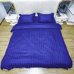 Комплект постельного белья двуспальный страйп-сатин 1 см 100% узбекский хлопок Lelit синий электра