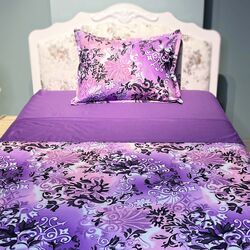 Комплект постельного белья 1,5-спальный сатин 100% узбекский хлопок Lelit прожилки фиолетовых листьев