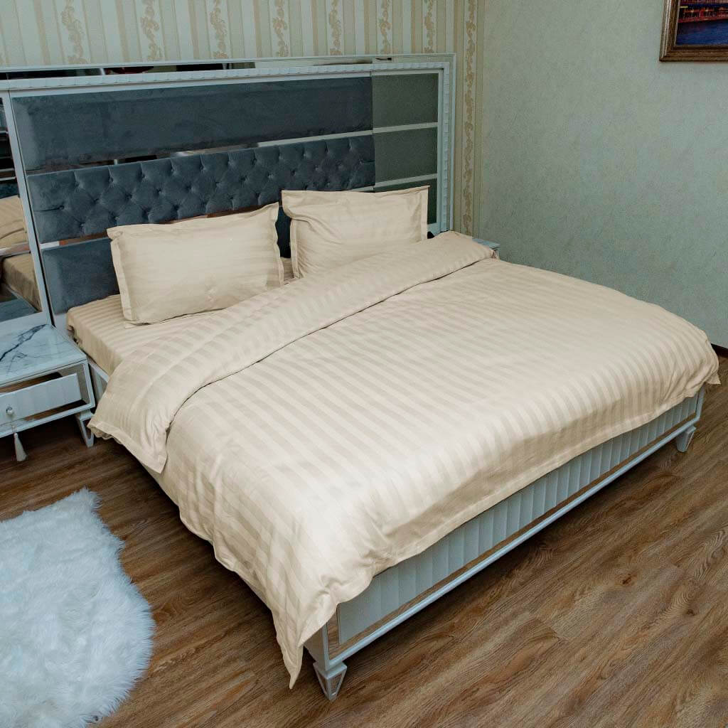 Комплект постельного белья Lelit семейный Страйп-сатин Кремовый