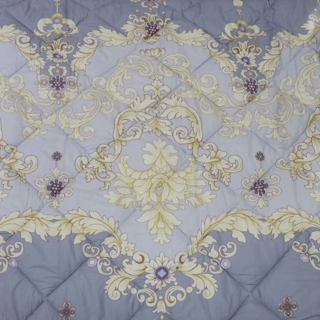 Одеяло стеганое произведено из микрофибры с наполнителем из метражного синтепона. Микрофибра - гипоаллергенная ткань, состоящая из полимерных и натуральных волокон, в том числе нейлона, полиэстера, хлопка или вискозы (микроволокна толщиной в несколько микрометров). Она проста в уходе, приятная на ощупь и красивая. Хорошо впитывает влагу.
