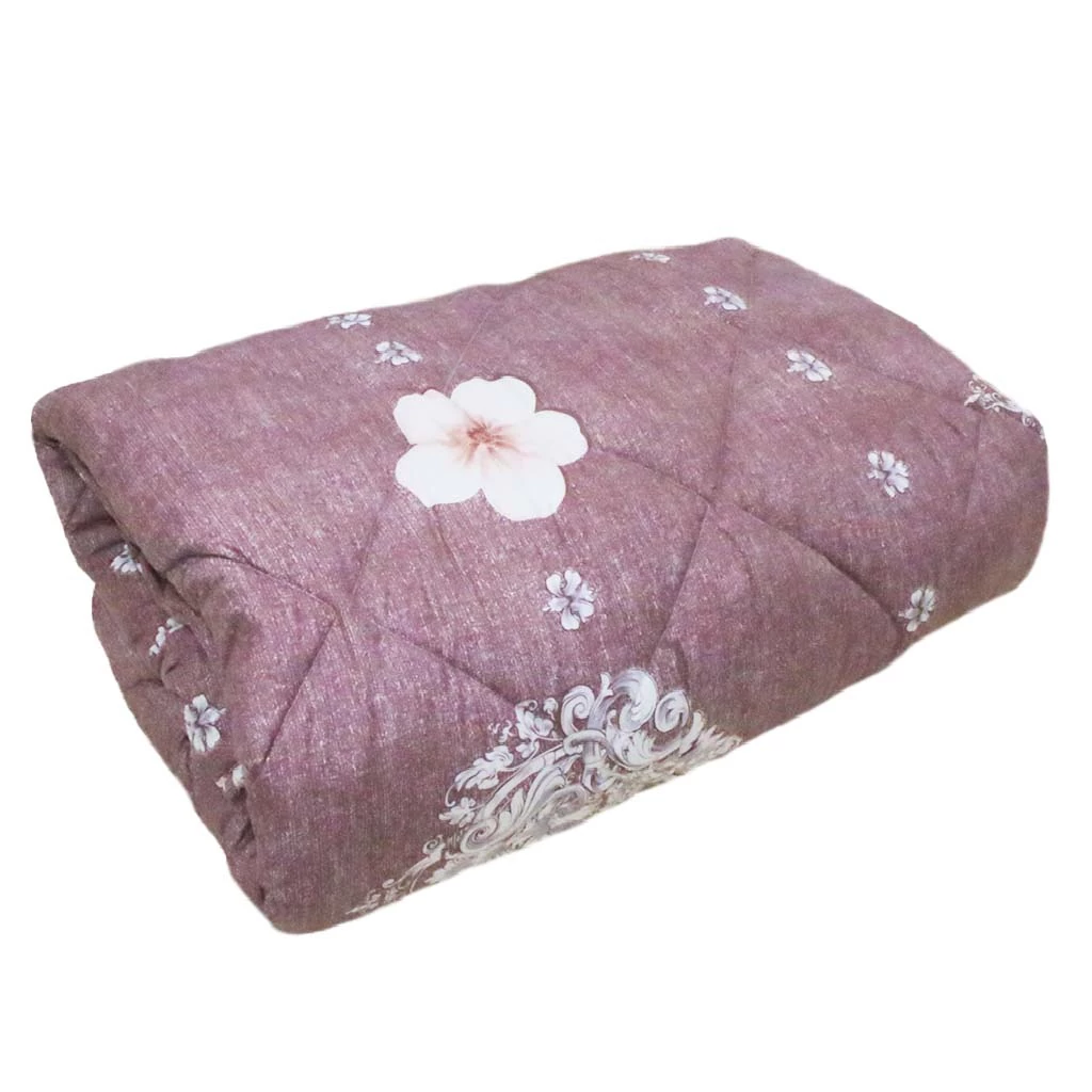 Одеяло стеганое произведено из ткани микрофибра с наполнителем из метражного синтепона. Микрофибра - гипоаллергенная ткань, состоящая из полимерных и натуральных волокон, в том числе нейлона, полиэстера, хлопка или вискозы (микроволокна толщиной в несколько микрометров). Она проста в уходе, приятная на ощупь и красивая. Хорошо впитывает влагу.