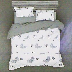 Комплект постельного белья Lelit Серые бабочки на белом 1,5спальный Перкаль 100% хлопок