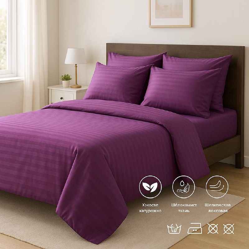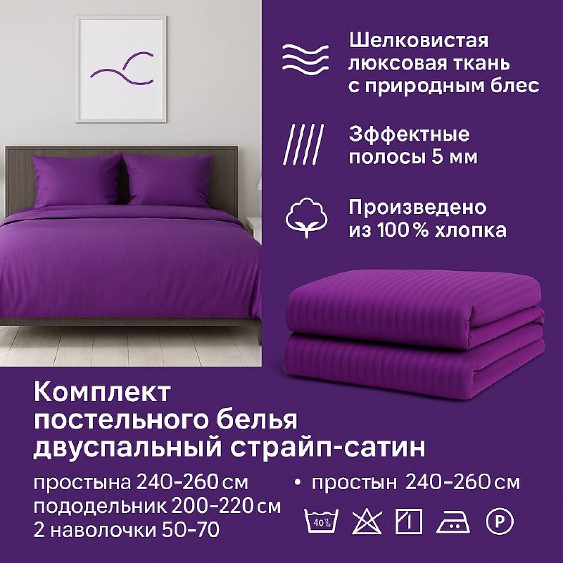 КПБ 2-спальный страйп-сатин 10мм LELIT фиолетовый 17-1710
