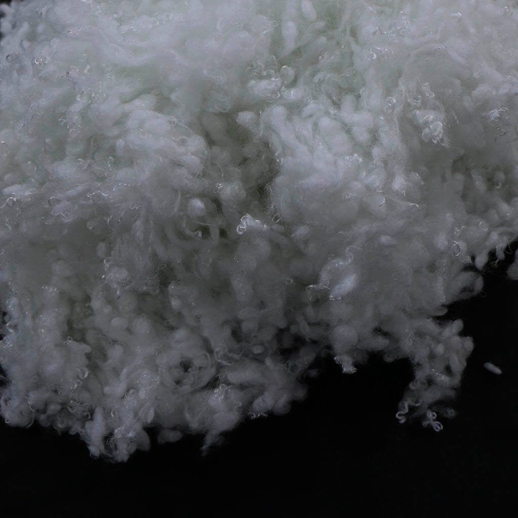 - Спиралевидное волокно белого цвета, обладает повышенной упругостью, поэтому и меньшим расходом на единицу готовой продукции, а также способностью принимать форму предмета. Покрытие волокна силиконом уменьшает трение между волокнами при сжатии-восстановлении, что говорит о долговечности наполнителя.