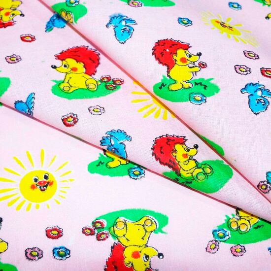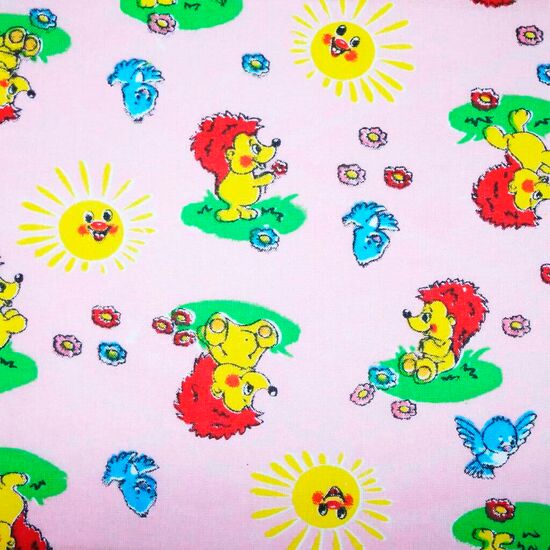- Ситец с детским принтом производят из чистого хлопкового сырья. Такие ткани просты в уходе, приятны на ощупь и красивы.