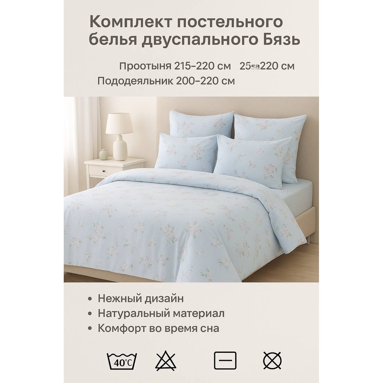 • пододеяльник 200×220 см,