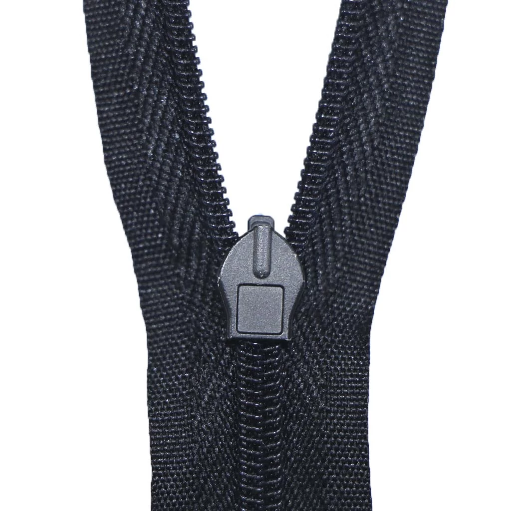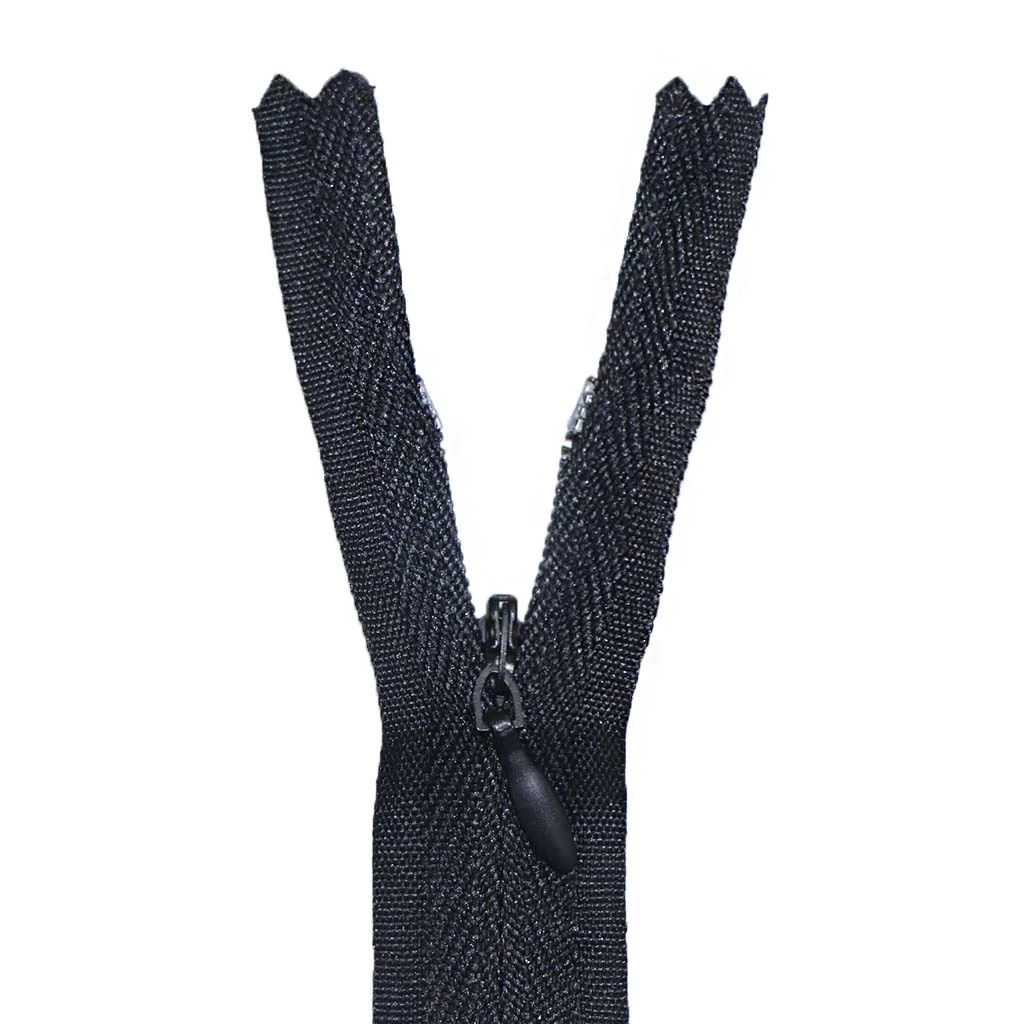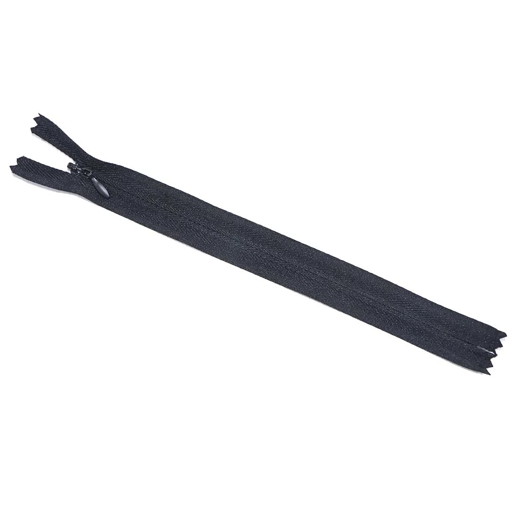 Потайная застежка молния, является неразъёмной. Длина у неё 20 см, поэтому она отлично подойдет для пошива платьев, юбок и брюк. И других вещей фасон которых подразумевает молнию, но молнию не должно быть видно. Молния состоит из хлопчатобумажной ткани с пластиковыми зубчиками. Замочек (собачка) металлическая.