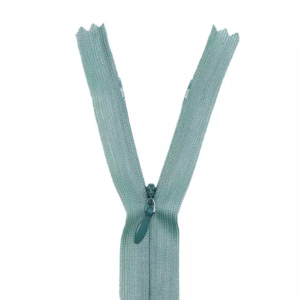 Потайная застежка молния, является неразъёмной. Длина у неё 20 см, поэтому она отлично подойдет для пошива платьев, юбок и брюк. И других вещей фасон которых подразумевает молнию, но молнию не должно быть видно. Молния состоит из хлопчатобумажной ткани с пластиковыми зубчиками. Замочек (собачка) металлическая.