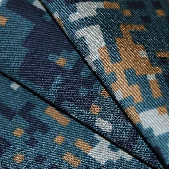 Камуфляжная ткань состоит из 90% полиэстера и 10% хлопка. Благодаря такому составу ткань отлично подходит для пошива костюмов, она практически не мнется, легко отстирывается, не теряет цвет и внешней презентабельности.