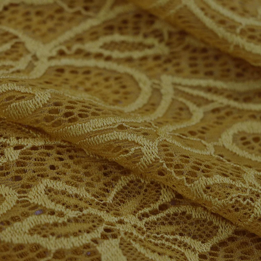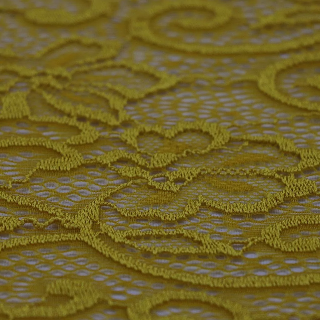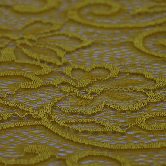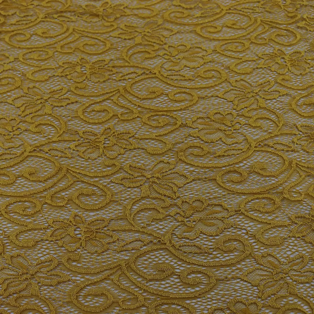 Гипюр полиэстер — плотное кружево для платьев 100 г/м² горчичный
