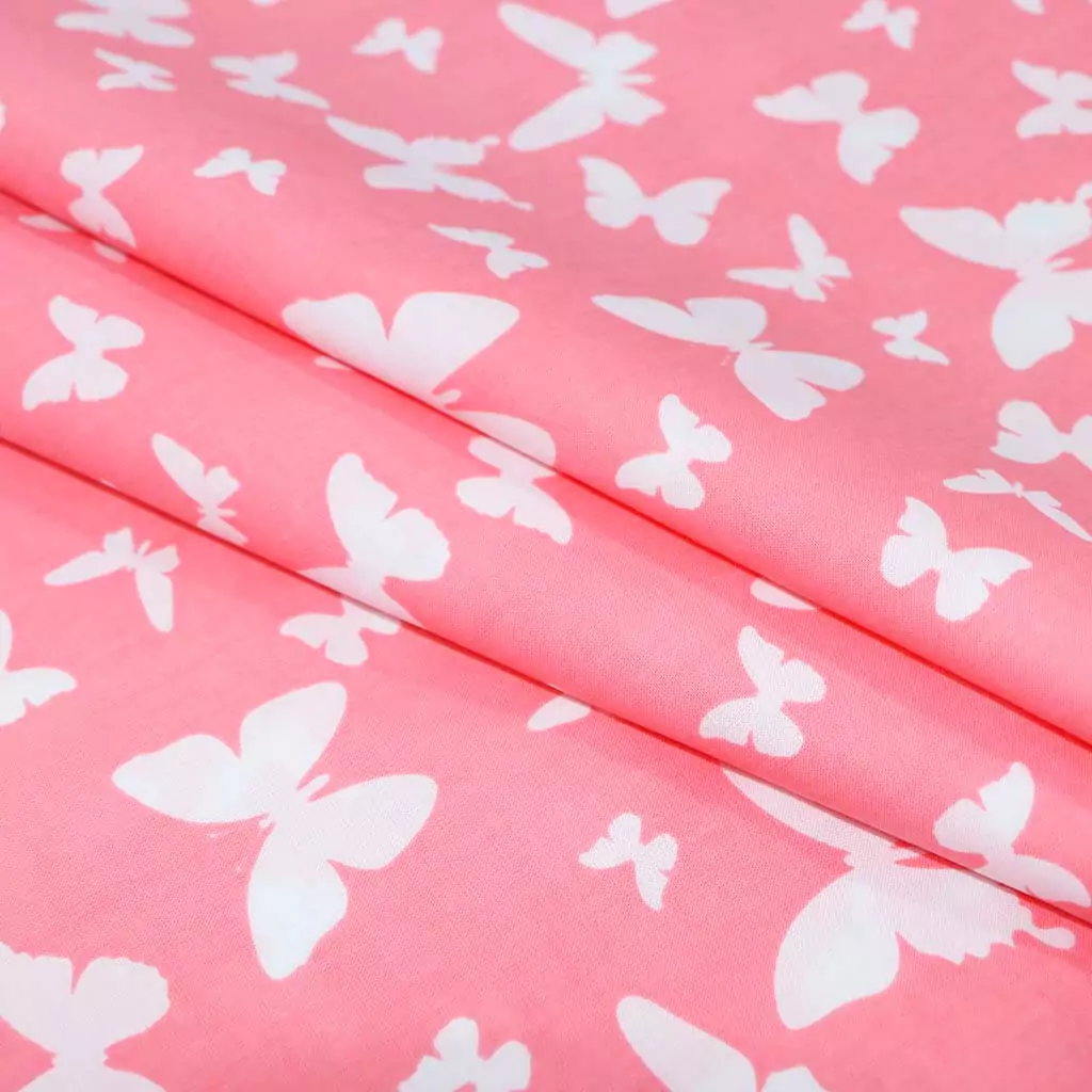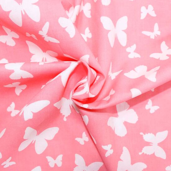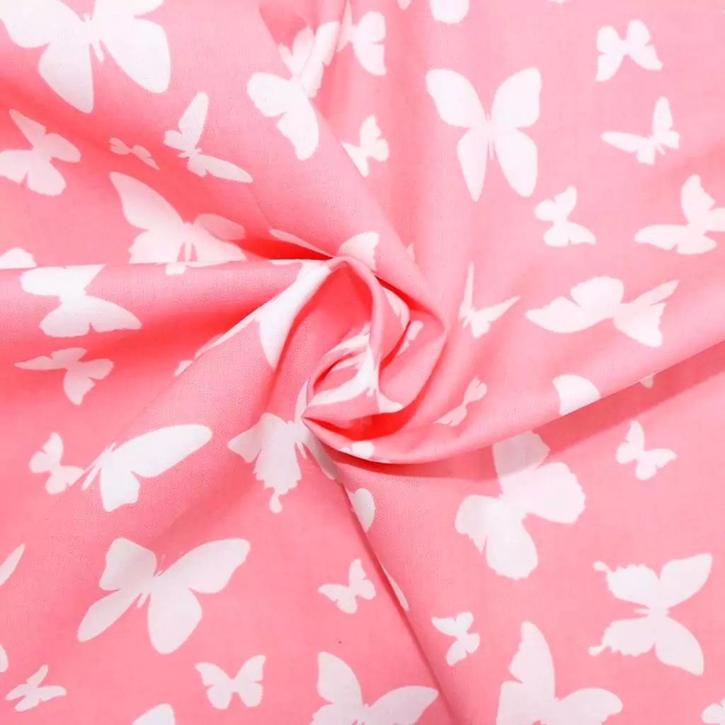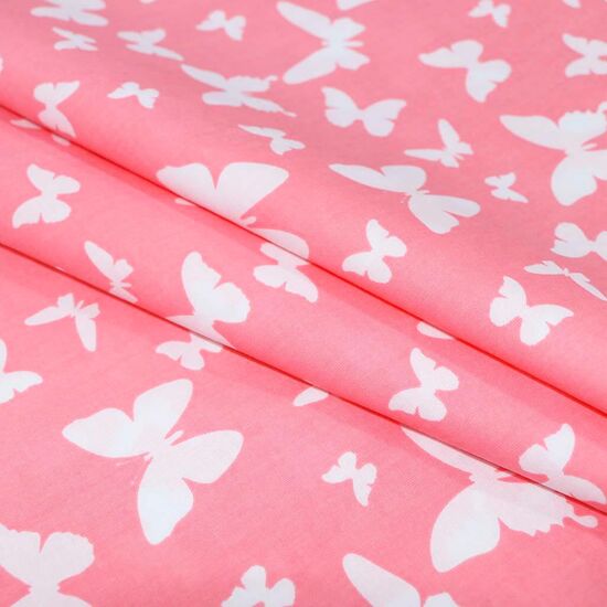 Поплин 160 см Бабочки белые на розовом