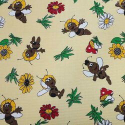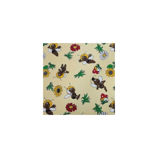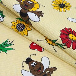 Ткань вафельная полотенечная 100 ХБ ширина 80 см плотность 180 гр рулон 50 м пчелки на бежевом