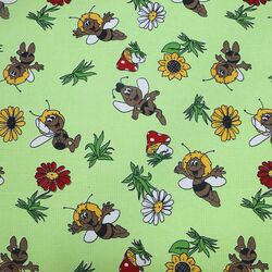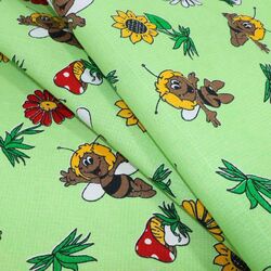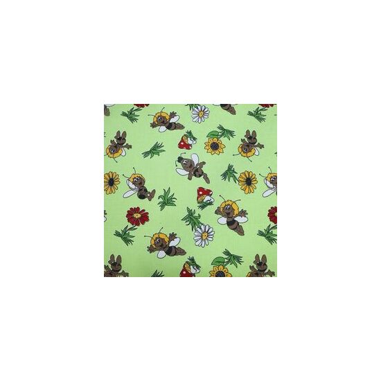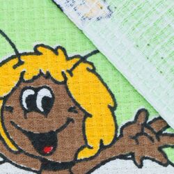 Ткань вафельная полотенечная 100 ХБ ширина 80 см плотность 180 гр рулон 50 м пчелки на зеленом
